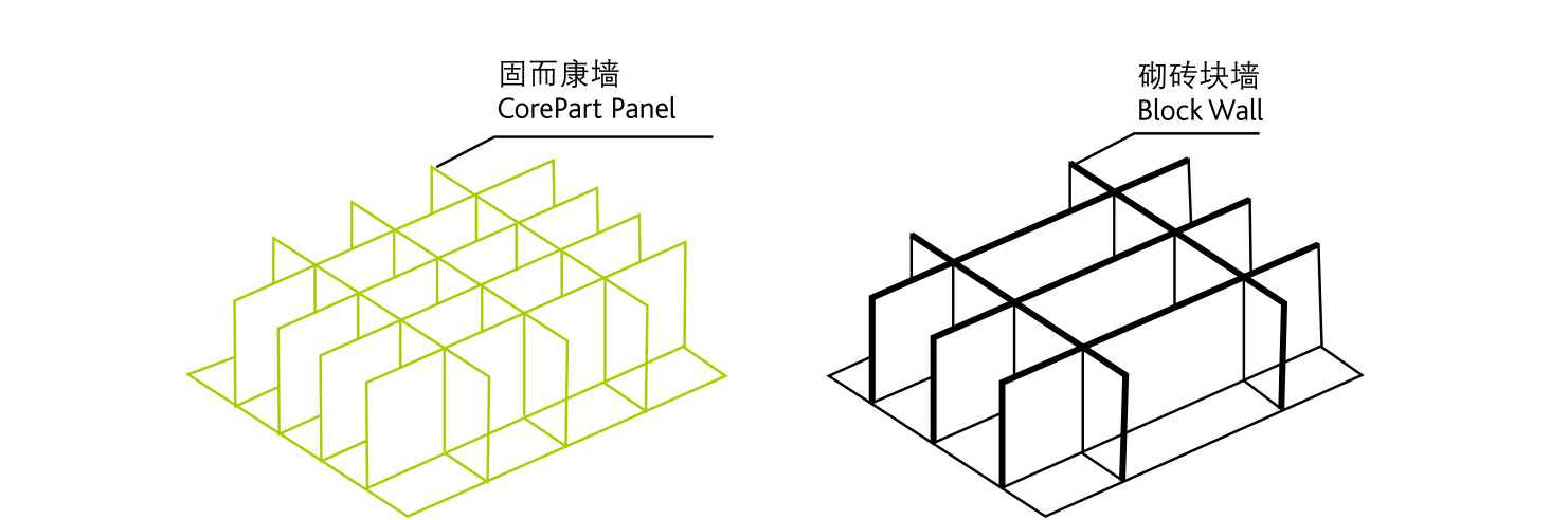 • 轻质条形墙板,装配式施工,施工速度比传统砌筑墙体快10倍以上,大大降低劳力和隐形成本